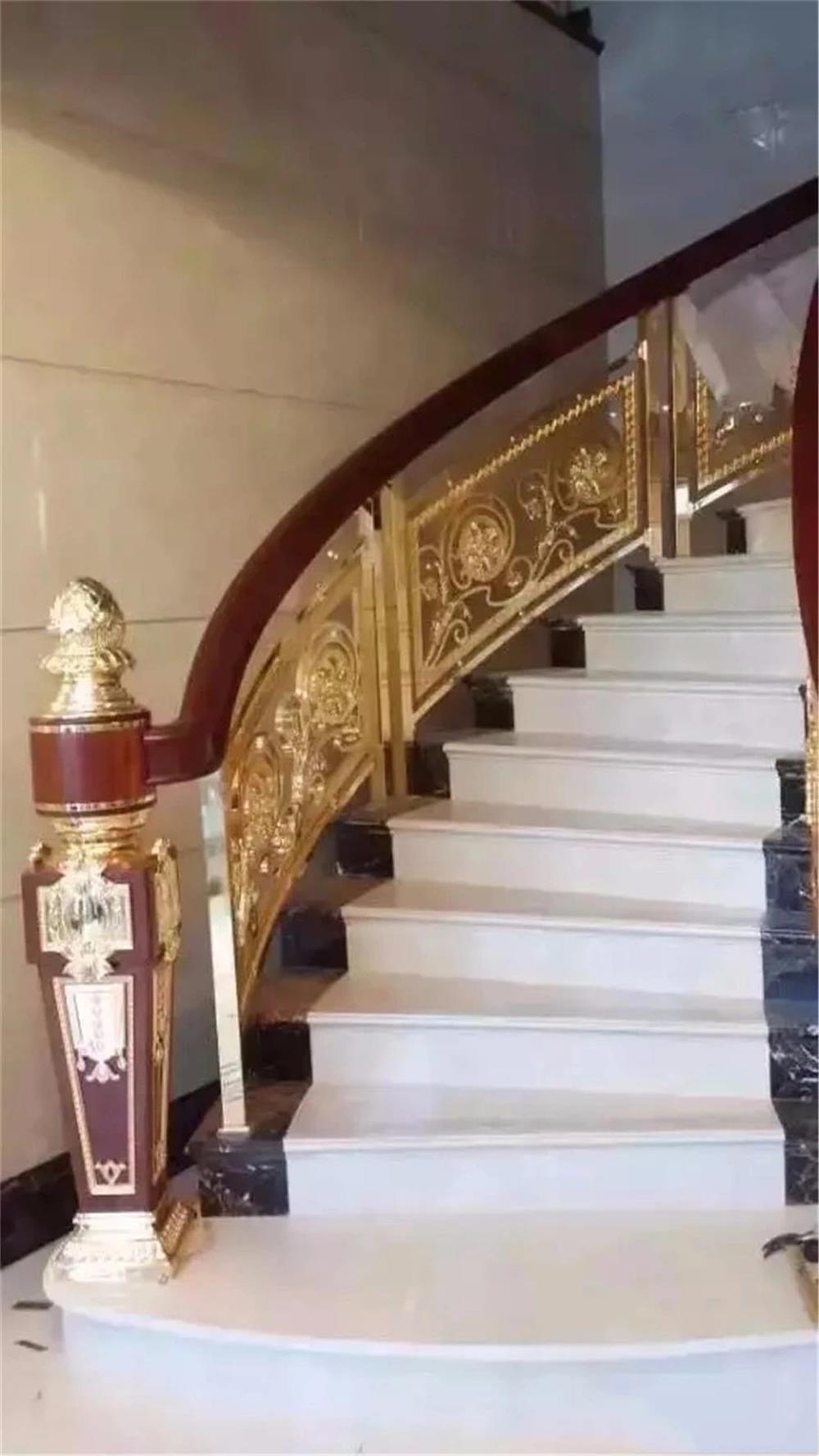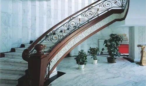 在大厅内的旋转楼梯一般旋转弧度为100度至120度。下宽上窄,比例为4比3至3比2。大厅用豪华大理石旋转楼梯的踏步高度应在150毫米以下,最窄处的踏步宽度不要小于310毫米,最宽处不限宽度,楼梯的宽度一般应在1300毫米以上,也能达到2000毫米以上。