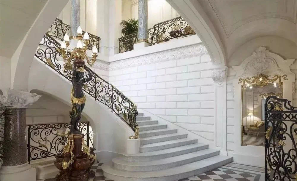旋转楼梯,作为一种经典艺术形式,以别具匠心的构思、赏心悦目的造型,巧妙连结建筑错层构造,增加了酒店、会所空间的灵动性。