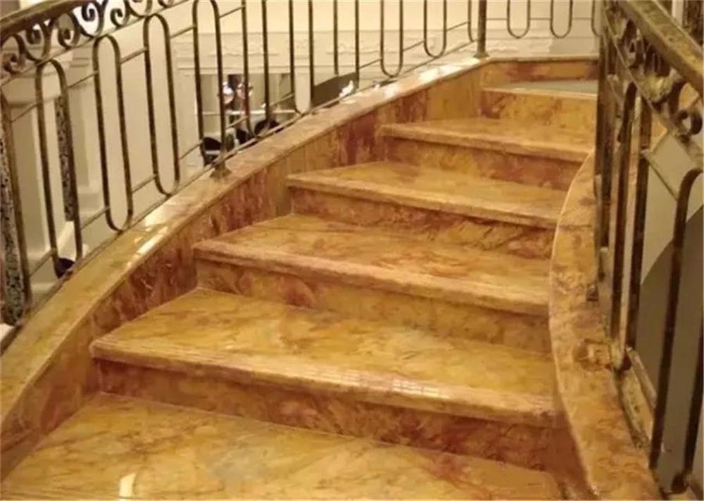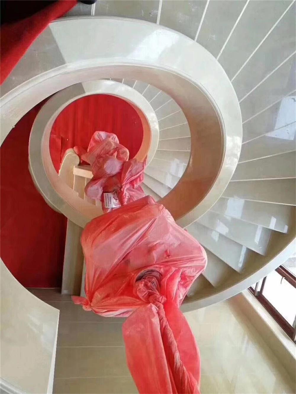 大理石旋转楼梯部件高精度安装难度大的是旋转扶手,其次是旋转腰线,之后是旋转盖板,旋转侧板,踏步。因为大理石扶手是悬空对接,对接后的延长线很容易产生偏差,所以对接安装扶手要选用经过培训的高级技师安装。