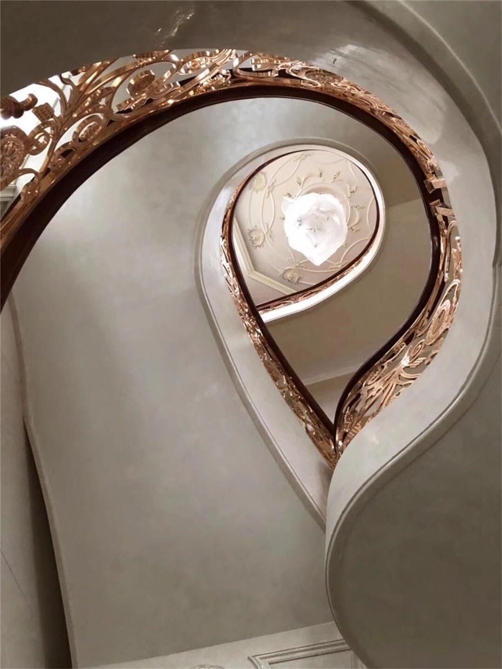 旋转楼梯的基础框架不论是用混凝土或钢架制做都一定要精准,石材贴面的曲线弧度要自然,不能有曲度的突然变化,一个好的石材旋转楼梯要给人一个整块石料制做的感觉,不能有枯树枝、藕节的感觉。