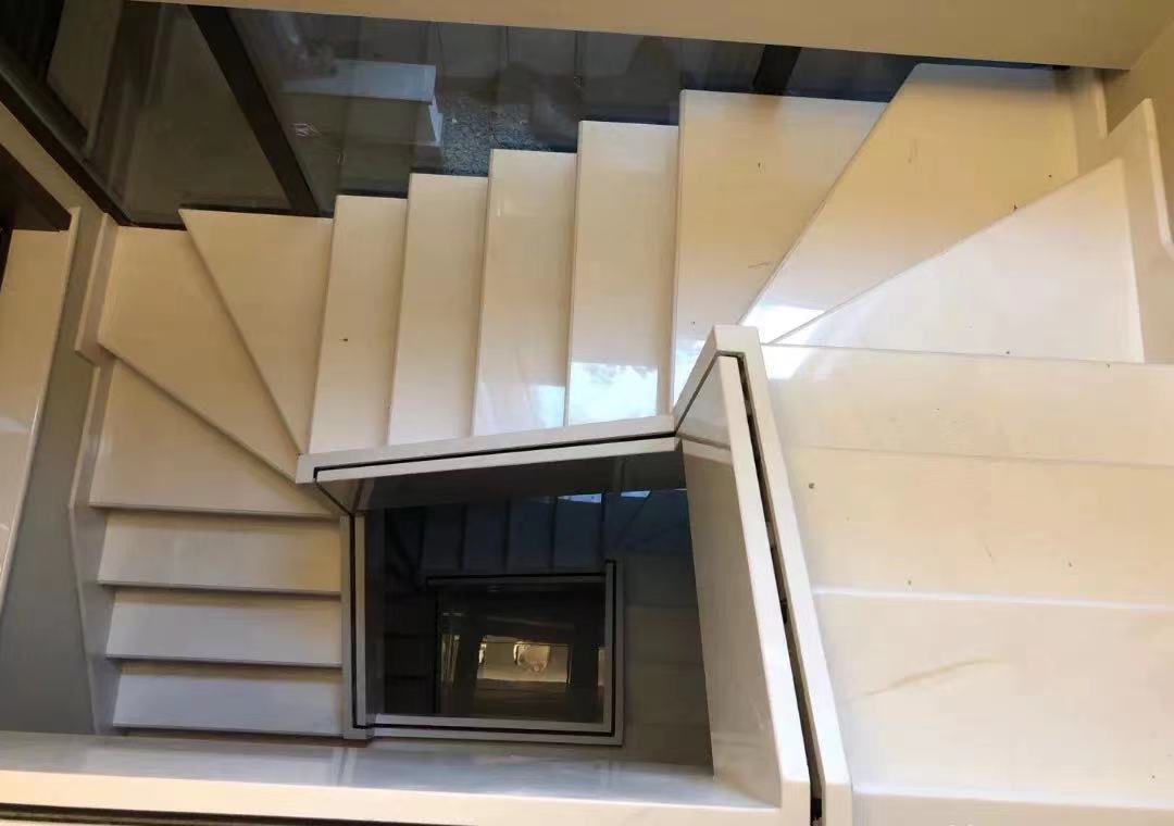 天然雅士白玻璃栏杆楼梯