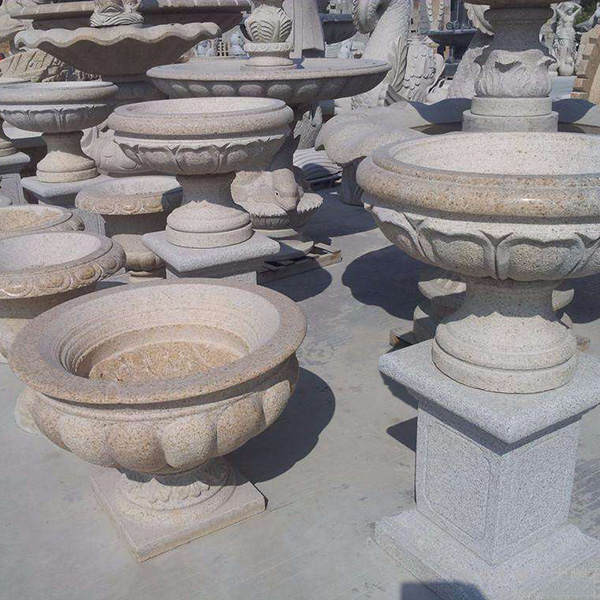 花钵制作材料可以是花岗岩,砂岩,锈石,大理石,芝麻白,莆田锈石等。